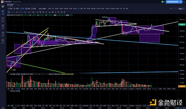 此外,从比特币自9.4日瀑布后形成的反弹收敛来看,目前仍然属于开口较大的收敛构成。根据炊事团收敛战法,具有大开口收敛的上涨往往不具有很强的稳定性。因此如果比特币不能够站稳11500上方,并在高位形成日线级别的窄收敛,本轮行情快速回踩10500的概率非常大。