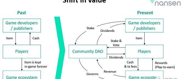 像AxieInfinity这样的游戏更进一步,推出了治理代币和社区国库,将游戏的所有权和管理权下放,因此任何决策权和现金流的积累最终都将由玩家社区而不是游戏开发者获得。