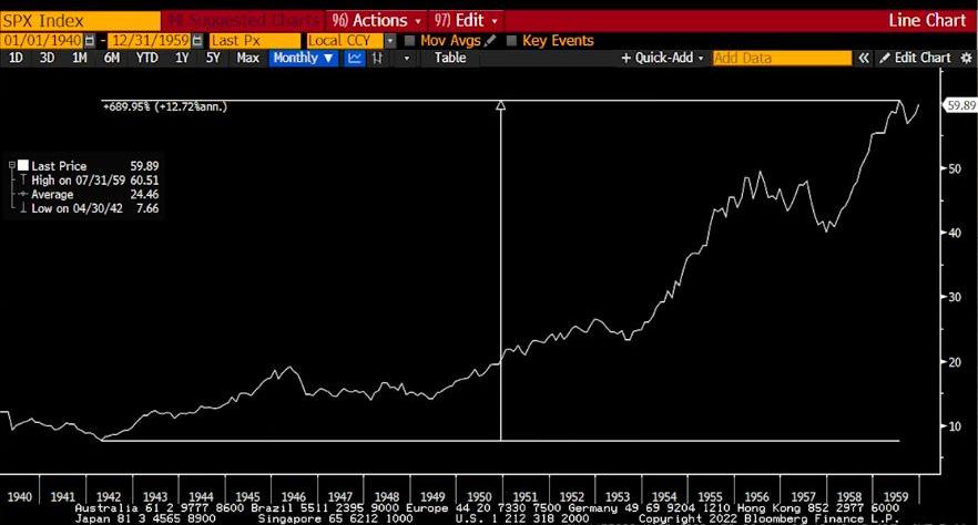 正如标普500指数显示的那样,负的实际利率对股票市场更有利。在当时那段时间,我们有供应冲击和金融压制,股票市场上涨了700%。
