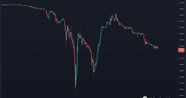当0.98美元在Binance上受到数亿美元的保护时,显然已经结束了。红线中间的小勾号是大约8000万美元的迅速损失。