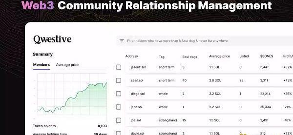 Qwestive是一个Web3CRM平台,通过代币持有者洞察和Web3原生社区管理工具帮助项目保留和扩大用户群。目前,Qwestive正在向100个社区推出封闭Beta版计划。