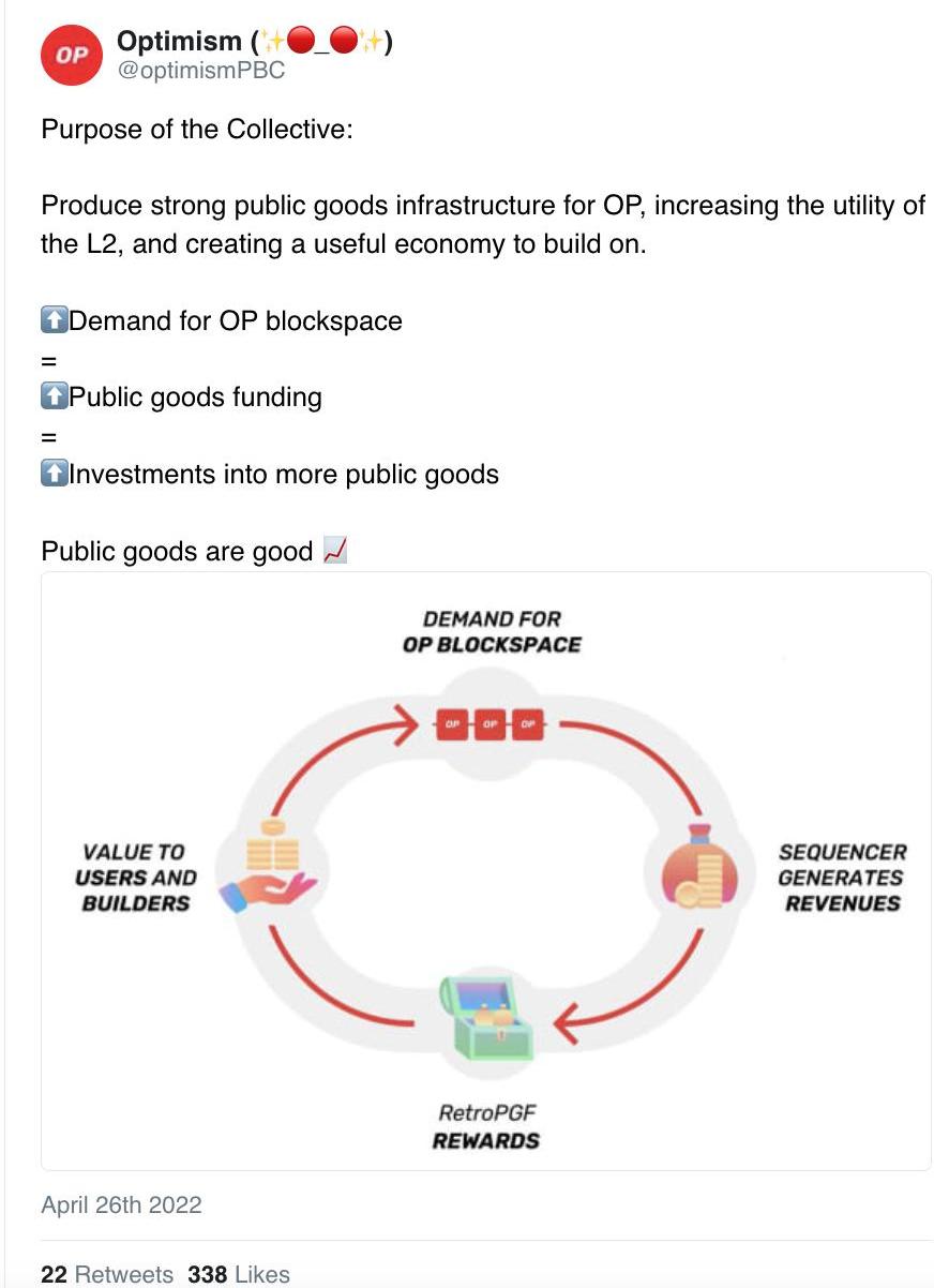 L2区块空间费用产生的收入直接用于为OptimismL2构建有用的东西的创新者和创始人。RPGF为未来投入资金,使公共产品建设者能够建设,并保证如果他们建设有用的公共产品,就会有钱等着他们。