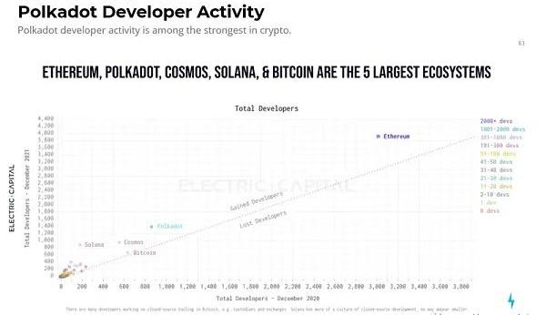 Polkadot的开发者活动仍然是加密领域中最活跃的。