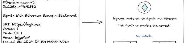 在这一点上,钱包可以呈现一个友好的程式化的界面,让用户体验更佳,并且不对用户将要采取的行动产生任何怀疑。而不是给用户一个任意的文本块来签名。用户现在只需点击一个确认对话框来“登录”,因为钱包能够“理解”签名请求。为了实现完全透明,EIP-4361规范中声明所有信息和字段仍然必须在其他子界面(如详细视图)中可用。