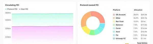 TribeDAO的第一个项目是FeiProtocol。它是FEI稳定币的发行者,这是市值第11大的稳定币,供应量超过5.58亿美元。