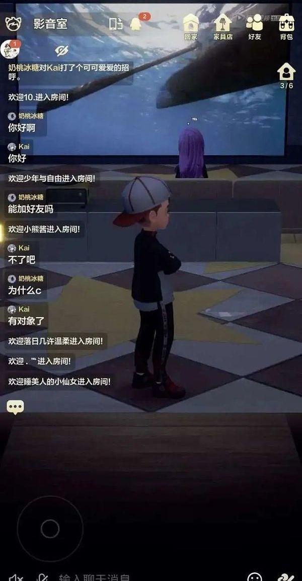 在超级QQ秀刚上线时,还曾推出过一个“影音室”的功能,里面会在不同时段播放不同视频,基本都是来自腾讯视频的版权内容。类似于家具店,用户也可以在影音室看到其他在线用户的虚拟形象,一起坐在沙发上看视频,也可以文字或语音交流,用各种动作打招呼等等。