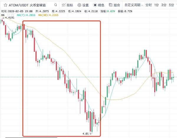 Cosmos主网代币Atom的价格由此开启动荡之路。从2月4日0点时的开盘价4.35美元,一路跌至当日16时的最低价4.01美元,全天最高跌幅超8%。