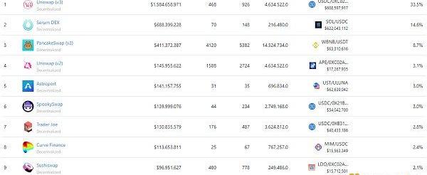 过去24小时去中心化交易所的交易量数据来源:coingecko