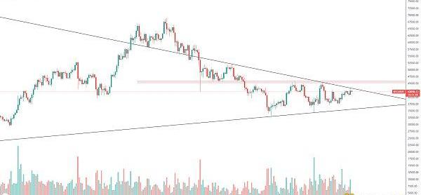 近期继续关注日线能否有效突破站稳上方压制线,今日点位43250美金,突破站稳后面将有机会再次试探前期多次遇阻的压力带,这一带若能突破,上方月线压力47500-48500美金。