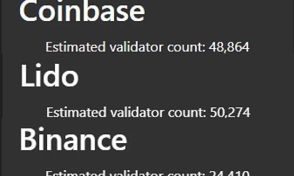 上图:Coinbase、Lido和Binance中的预计验证者计数。图源:https://pools.invis.cloud/