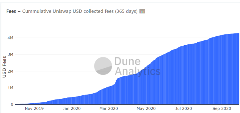 自九月份以来,来自Uniswap的流动性提供者收益也一直在走下坡路,这表明去中心化代币兑换交易增长已趋缓。