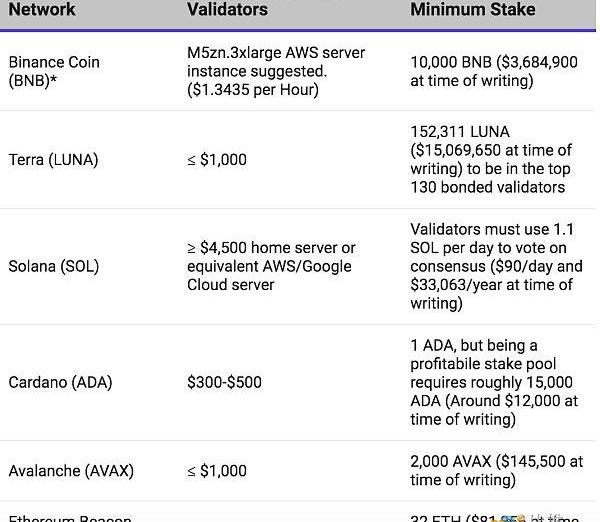 硬件成本是根据每个链的验证器硬件要求估算的。