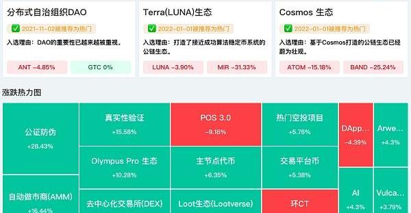 现阶段的DAO并没有像去年预料的那般,貌似有些“凉”,能否成为2022年的热点还需要时间观察。即便这样,也不影响它在行业中所处“热门板块”位置。在这一板块中已经形成了近百亿市值,百余DAO项目。有ConstitutionDAO、OpenDAO、Maker等被广为周知的项目,也有很多新生面孔。