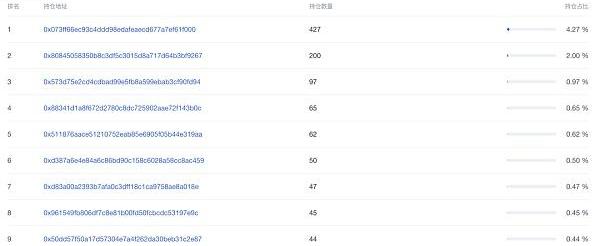 排名前10的地址持有1,077个WoW,其中最多的地址持有427个WoW。