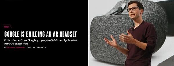 2022年1月20日,国外知名科技媒体《TheVerge》刊登了一篇名为《GOOGLEISBUILDINGANARHEADSET》的文章,报道谷歌近期开始了一个名为Iris的神秘项目。根据《TheVerge》的描述,此项目很可能是开发一款AR头盔。