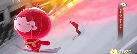 两只吉祥物和运动员一起在雪道上自由滑翔,跳跃的音符和纷飞的雪花相碰撞,呈现了冰与雪的华美乐章。