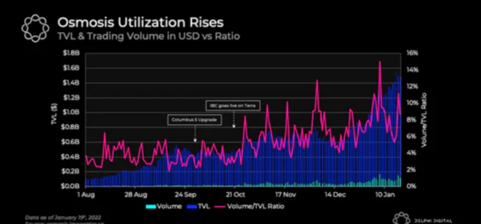 新的流动性引导:像Osmosis这样的IBC原生DEX的出现,将更容易促进IBC上社区主导和有机项目的流动性引导,而不依赖CEX。ATOM和OSMO等Token的用户、质押者、流动性提供者可能会在今年得到更多的空投。