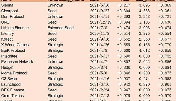 多数投资者喜欢追踪项目的融资信息,以此作为项目资质的评判标准。本文详细统计了自2020年7月以来的589个已发币项目的融资信息,计算自融资信息公布以来的收益率、最大收益和最大亏损。