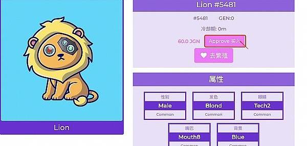 三、选择购买最喜欢且最便宜的狮子!点击你选中的狮子,进入批准页面,并点击“Approve买入