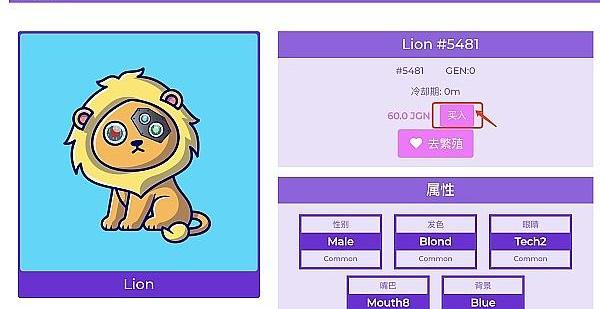 五、批准买入后,即可在市场购买任何一直狮子。选择你想购买的狮子,点击“买入”