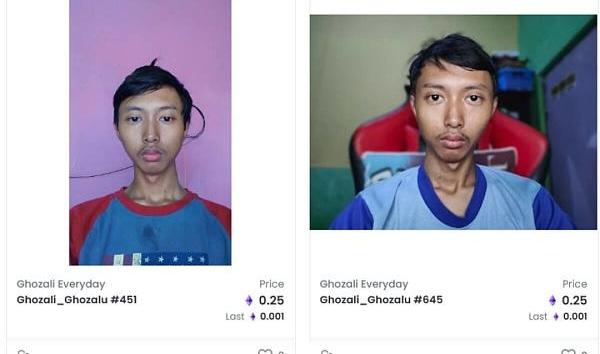 来自印尼首都雅加达的22岁学生GhozaliGhozalu,他自拍了自己的照片,“随随便便”制成NFT,最近又“随随便便”开始在NFT市场OpenSea上出售。