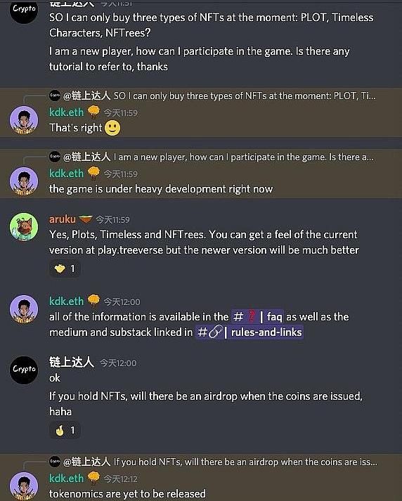 关于新人如何拿白名单,官方的答复是:留在社区、等待消息,确定会有这样的机会。所以,加入Discord开撸吧。?