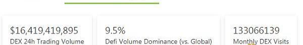 2.过去24小时去中心化交易所的交易量:164.19美元
