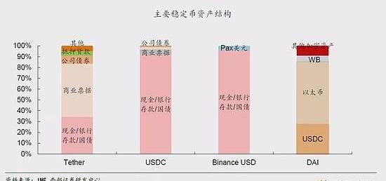 稳定币是所谓稳定币,是指私人部门发行的,基于区块链技术的,1:1锚定某种法币价值的数字资产。因其以法币或其他稳定资产为基准,承诺可以随时赎回,具备相对稳定的价值,稳定币在一定意义上承担起区块链数字经济里货币的基本职能。稳定币概念兴起源于FACEBOOK的LIBRA计划,随后引发各国监管担忧而不了了之。但2020年以来,伴随加密货币的火爆,作为加密货币交易“计价单位”和“支付媒介”的其他稳定币规模大幅上升。2014年,泰德公司推出RealCoin,并于11月更名为USDTether,成为在交易所上市的第一批稳定币,随后USDCoin、BinanceUSD、DecentralizedAutonomousOrganization、PaxDollar等稳定币相继出现。
