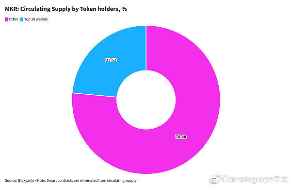 然而,实际的链上投票过程似乎主要由顶级持有者控制,因为排名前20位的地址约占总供应量的24%。与分析的其他一些项目相比,这种分配仍然相当公平。