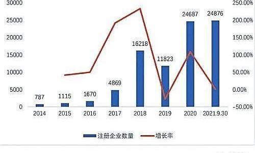 根据产业地图,近98%的区块链企业成立于2014年之后,尤其是2016年以来,我国区块链企业注册数量快速增长。2017年注册企业数量是2016年的3倍,2018年注册企业数量是2017年的3倍,达到小高峰。进入2019年,区块链行业趋于冷静,企业注册数量有所减少。2020年,区块链从业热情空前高涨,新成立的区块链企业数量大幅超越2018年的小高峰,达到2.4万余家。2021年,区块链行业迎来发展新高潮,截至9月底,新注册区块链企业数量已经与去年持平。