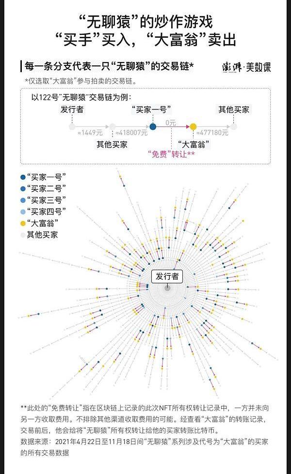 与“大富翁”和他的“军团”不同,花钱最多的买家“富豪”,买入卖出都是亲力亲为,而且成就不凡。数据爬取时身价最高的20只猴子,有7只他都参与了交易。