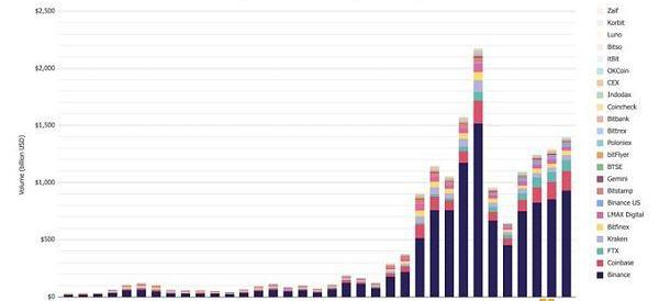 13、根据TheBlock的合法成交量指数,2021年现货成交量将超过14.5万亿美元,是2020成交量的8倍。