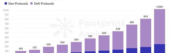 FootprintAnalytics:DeFi&DEX协议的每月总数量情况