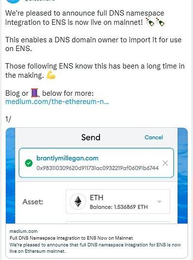 推文:https://twitter.com/ensdomains/status/1430933399745798155?s=20
