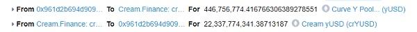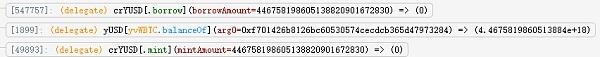 446,758,198.60513882090167283?个YUSD代币,并以此铸币crYUSD,铸完币后归还,并将crYUSD发送给A,重复两次。