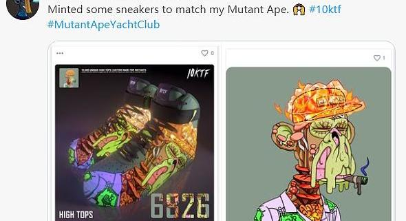这就是一些加密爱好者在推特上「秀」出的NFT头像的运动鞋衍生物,它们的画风是这样的: