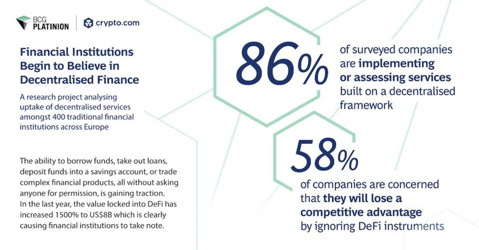 一个研究项目分析了欧洲 400 家传统金融机构对去中心化服务的采用情况。
