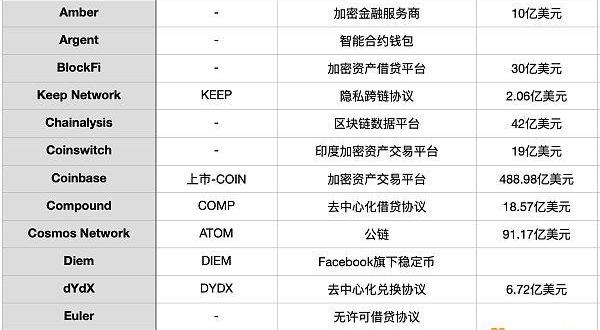 这些项目主要集中在DeFi领域包括MakerDAO、Compound、Uniswap、Yield、Synthetix等,以及工具应用类TaxIt、Argent、Flashbots、Namebase等。