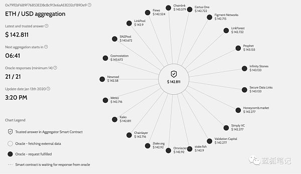 (ChainLink的ETH/USD价格数据流,21个节点提供服务)