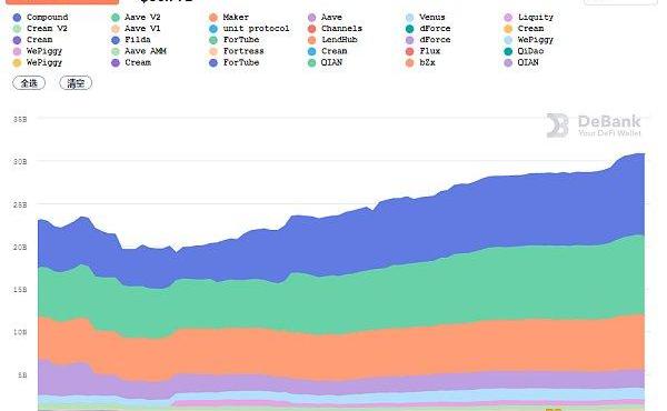DeFi借贷平台借款总量数据来源:Debank
