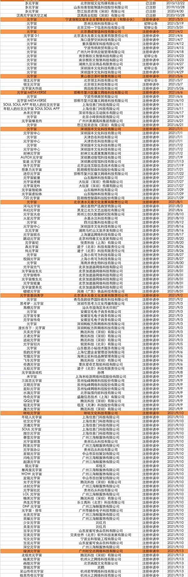 从上述图标中我们不难发现,2021年是“元宇宙”相关商标申请注册的爆发期,尤以9月份更为集中。