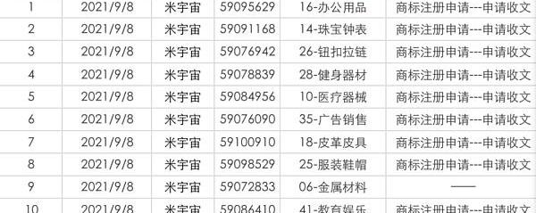 为了防止商标被抢注,米哈游更是在一口气申请注册了10个不同分类的“米宇宙”商标,覆盖办公用品、教育娱乐、广告销售等诸多行业。