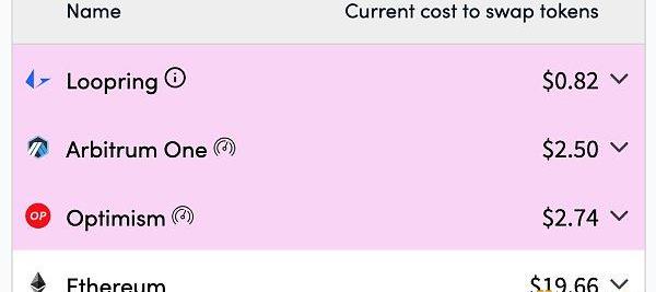 在以太坊和几大L2网络上进行代币兑换的成本。图源:l2fees.info