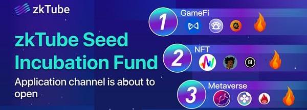 2021年8月27日,zkTubeFoundation与ONEUNICapital联合十多家投资机构共同创立种子孵化基金,规模达千万美元。将于9月1日开放对以太坊企业联盟中GameFi、NFT、Metaverse的Start-Up申请通道,该基金的成立是为zkTube推动ZK-Rollup技术大规模采用的努力。该基金的主要目标是授权开发人员创建和执行GameFi项目,并在zkTube主网上线完全开源后和PayTubeWallet中建立一个强大的Defi生态环境和GameFi通道。