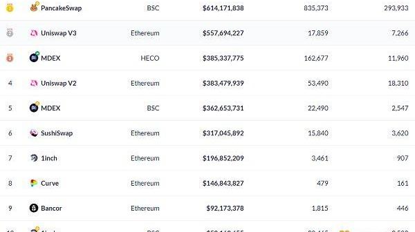 过去24小时去中心化交易所的交易量数据来源:Debank