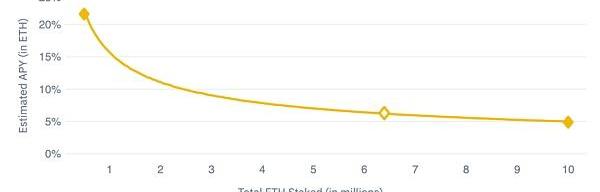 ?以太坊APY并不稳定,随着质押ETH总数的增多,APY也会降低。本文中的APY参考的是撰写本文时的数据。