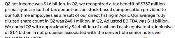 第二季度Coinbase确认了7.37亿美元的税收优惠,主要是由于4月份Coinbase直接上市后向全职员工提供的基于股票的报酬的税收减免。