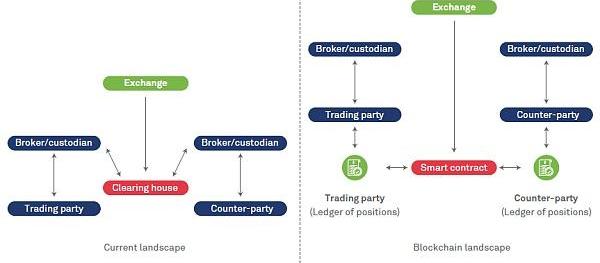 由于缺乏实时监控各种金融工具头寸的机制,交易方存在固有的贸易违约风险。目前,票据交换所充当中介机构并吸收这种违约风险。然而,中介机构的存在延长了贸易结算周期的时间表。