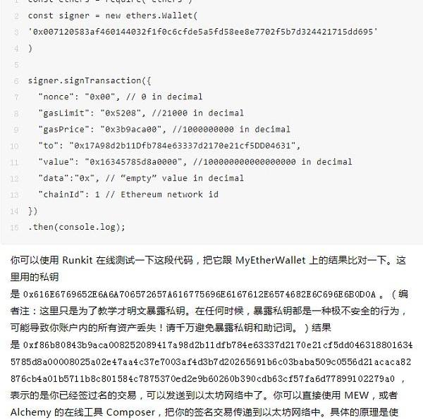最后,也很重要的是,我们还有?data?和?nonce?。如果你想要在交易中添加额外的数据,你就需要用到?data?字段。在你跟智能合约交互时,data字段可以包含你给合约的指令。而?nonce?则是以太坊网络用来跟踪你的账户状态、避免多重支付和重放攻击的一个数值。当你的交易因为gasfee太低而暂时无法打包的时候,你可以使用同一个nonce但指定更高的gasprice来“替换”你的那笔卡住的交易;一旦这笔“更快”的交易得以打包上链,你原来签名的那笔交易就会被以太坊的节点抛弃掉了。