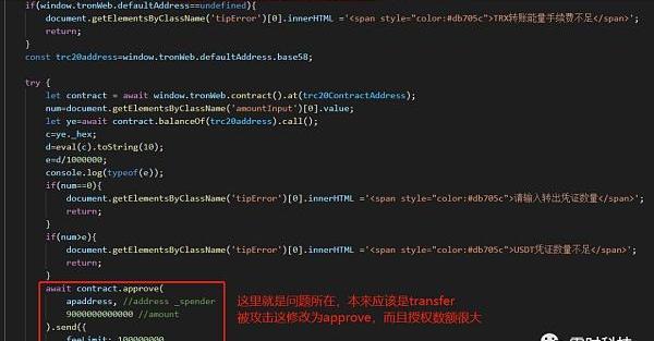 当授权成功后,这个平台后台可自动进行归集,也就是转账受害者钱包中的钱,通过transferfrom方法。